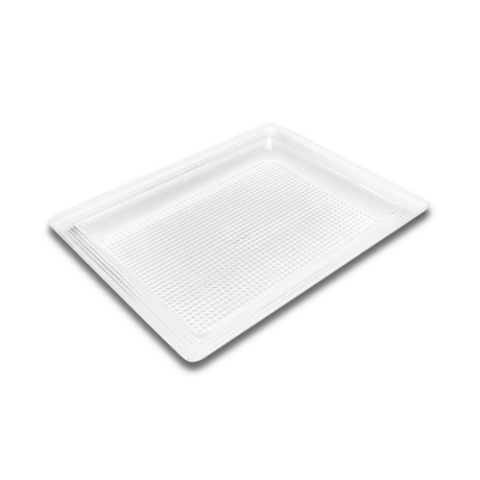Tray, 12"W x 10"D x 1"H, rectangular, clear, acrylic plastic, Delfin Supermarket (minimum = case quantity, 4 per case) (STOCK item)