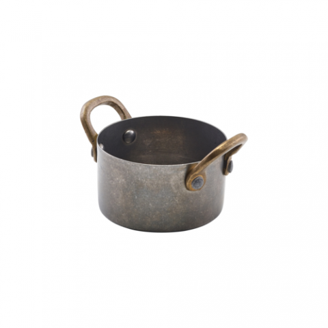 Mini Casserole Dish, 4-1/4" x 3-1/8" X 2-1/4", Round, Stainless Steel, Vintage, Genware London, GW SS, (minimum = case quantity) (stock item)