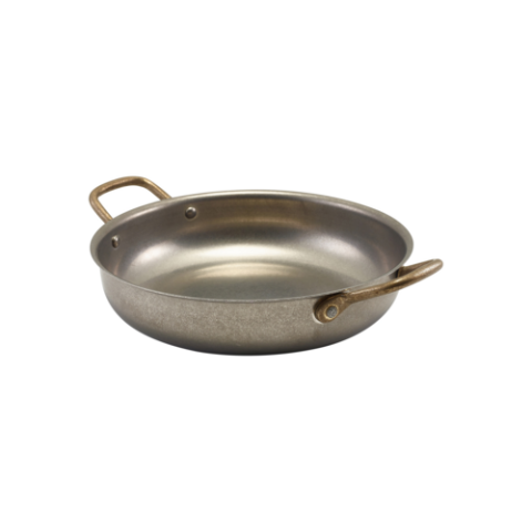 Round Dish, 1.5 qt, 11" x 8.625" x 2.0", GenwareVintage, Stainless Steel, Genware, Round, Stainless Steel, Dishwasher Safe, Hand Wash Recommended, 6 Per Case, Industrial Vintage Look (minimum = case quantity) (STOCK item)