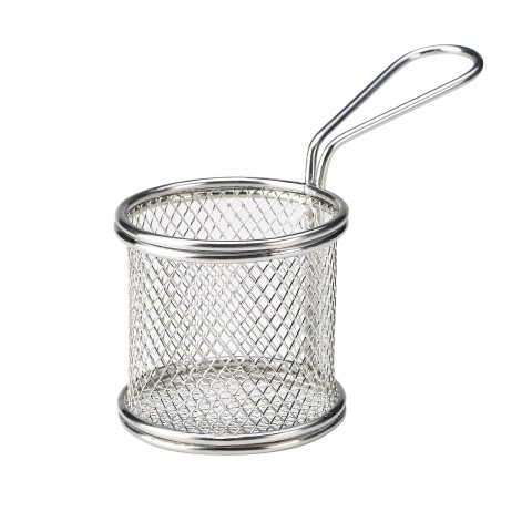 Round Serving Fry Basket, 6.75" x 3.625" x 5.625", Tabletop Accessories, Stainless Steel, Genware, Stainless Steel, Dishwasher Safe, 6 Per Case, The Ultimate Choice For Sides & Sauces (minimum = case quantity) (STOCK item)