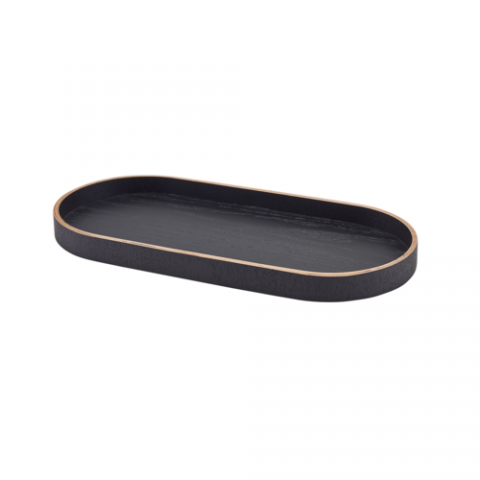 Oval Tray Wood Veneer Black, 13.75" x 6.375" x 1.125", Trays and Caddies, Wood Veneer Black, Genware, Oval, Wood, 6 Per Case, Rustic Tableside Solution (minimum = case quantity) (STOCK item)