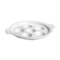 Escargot Plate, 6 hole, 8-3/8" dia., round, lug handled, Hall China, White (stock item)