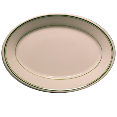 Rolled Edge Oval Platter, 10.5" x 7.25", RE & NR, Green Band, Homer Laughlin, Oval, China, Dishwasher Safe, Oven Safe, 24 Per Case, nostalgic look for your dining area (minimum = case quantity) (STOCK item)