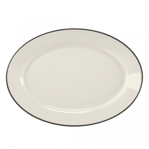 Rolled Edge Oval Platter, 13.375" x 9.25" x 1.5", RE & NR, Slate Line, Homer Laughlin, Oval, China, (minimum order quantity = 144 pieces) (NON STOCK item)