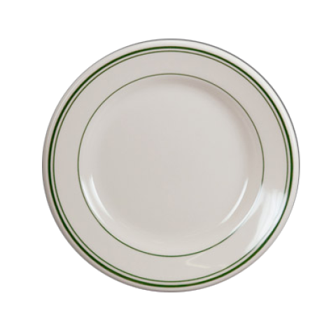 Rolled Edge Plate, 6.25", RE & NR, Green Band, Homer Laughlin, Round, China, Dishwasher Safe, Oven Safe, 36 Per Case, nostalgic look for your dining area (minimum = case quantity) (STOCK item)