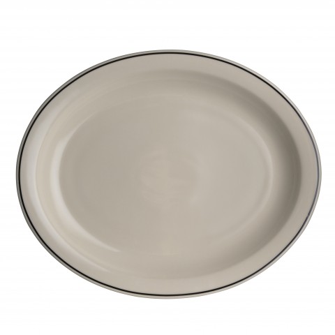 Platter, 13.75" x 11.25", oval, narrow rim, china, white, Homer, Ivory, Black Line (stock item)