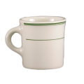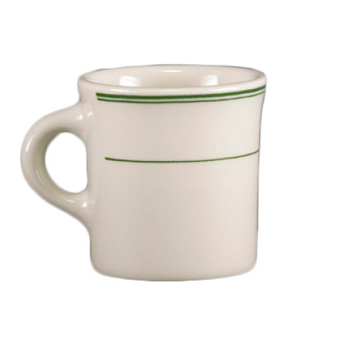 Mug, 8.75 oz, 4.375" x 3.375" x 3.375", Cups and Mugs, Green Band, Homer Laughlin, China, Dishwasher Safe, Oven Safe, 36 Per Case, nostalgic look for your dining area (minimum = case quantity) (STOCK item)