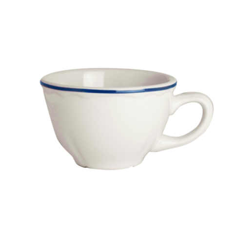Cup, 7.25 oz, 3.75" x 2.5", Carolyn, Styleline Blue, Homer Laughlin, China, Dishwasher Safe, Oven Safe Up To 500° F/258° C, 36 Per Case, Distinctive, Scalloped Edge (minimum order quantity = 144 pieces) (NON STOCK item)