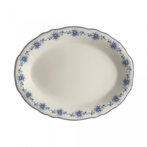 Oval Platter, 11.75" x 8.0", Carolyn, Giselle Blue, Homer Laughlin, Oval, China, Dishwasher Safe, Oven Safe Up To 500° F/258° C, 12 Per Case, Distinctive, Scalloped Edge (minimum order quantity = 144 pieces) (NON STOCK item)