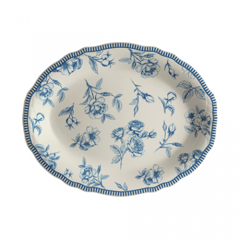 Oval Platter, 11.75" x 8.0", Carolyn, Marisa Blue, Homer Laughlin, Oval, China, Dishwasher Safe, Oven Safe Up To 500° F/258° C, 12 Per Case, Distinctive, Scalloped Edge (minimum order quantity = 144 pieces) (NON STOCK item)