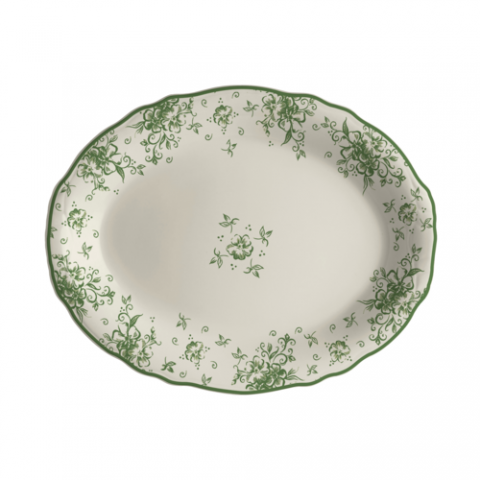 Oval Platter, 11.75" x 8.0", Carolyn, Camille Green, Homer Laughlin, Oval, China, Dishwasher Safe, Oven Safe Up To 500° F/258° C, 12 Per Case, Distinctive, Scalloped Edge (minimum order quantity = 144 pieces) (NON STOCK item)