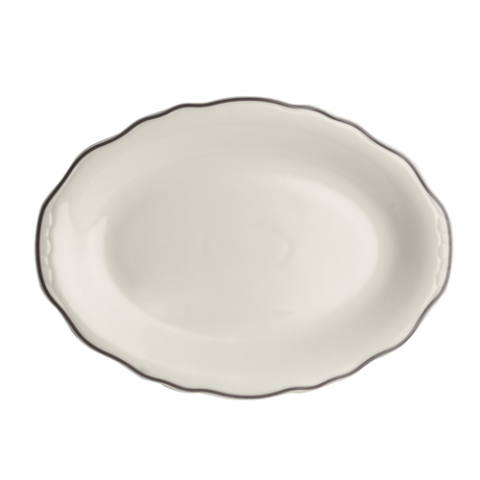 Oval Platter, 11.75" x 8.0", Carolyn, Styleline Slate, Homer Laughlin, Oval, China, Dishwasher Safe, Oven Safe Up To 500° F/258° C, 12 Per Case, Distinctive, Scalloped Edge (minimum order quantity = 144 pieces) (NON STOCK item)