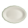 Oval Platter, 11.75" x 8.0", Carolyn, Styleline Green, Homer Laughlin, Oval, China, Dishwasher Safe, Oven Safe Up To 500° F/258° C, 12 Per Case, Distinctive, Scalloped Edge (minimum order quantity = 144 pieces) (NON STOCK item)