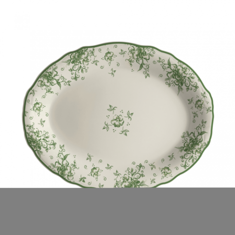 Oval Platter, 12.625" x 9.75", Carolyn, Camille Green, Homer Laughlin, Oval, China, Dishwasher Safe, Oven Safe Up To 500° F/258° C, 12 Per Case, Distinctive, Scalloped Edge (minimum order quantity = 144 pieces) (NON STOCK item)