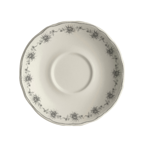 Saucer, 5.625", Carolyn, Giselle Slate, Homer Laughlin, Round, China, Dishwasher Safe, Oven Safe Up To 500° F/258° C, 36 Per Case, Distinctive, Scalloped Edge (minimum order quantity = 144 pieces) (NON STOCK item)