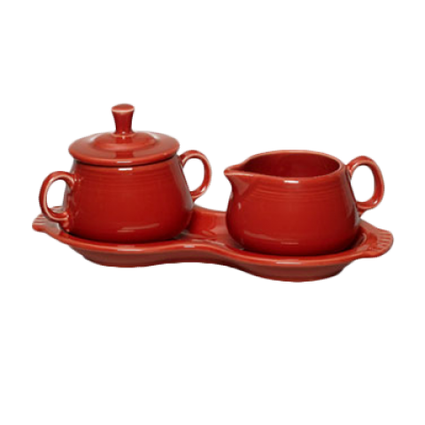 Sugar & Cream Tray Set, includes: (1) 7-3/4 oz. sugar bowl with lid & handles, (1) 7-1/4 oz. creamer with handle, (1) 10" tray, dishwasher/oven/microwave safe, fully vitrified, lead free, Homer, Fiesta®, White (4 each per case) (non-stock item)