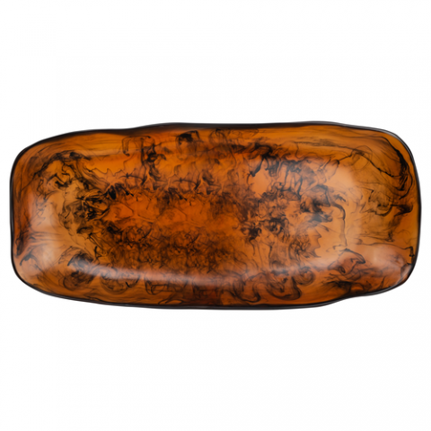 Platter, 21-1/4"L x 9-1/2"W x 2-1/2"H, rectangular, resin, tortoise, Kenny Mack, Wave (minimum = case quantity) (stock item)