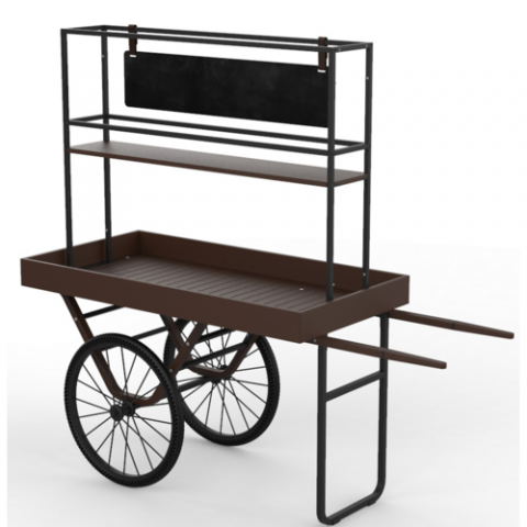 Mogogo Cantine Cart With Shelf And Sign Dark With Black Wheels