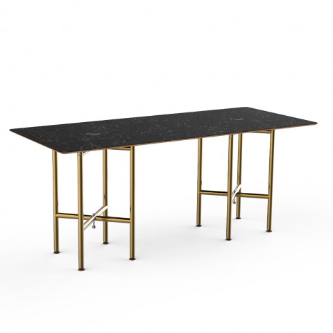 Mogogo Buffet Solutions Clix Table, 72" x 30" x 30"H, rectangular, Nero Marquina marble BHP high pressure laminate with bamboo core, brushed brass segments