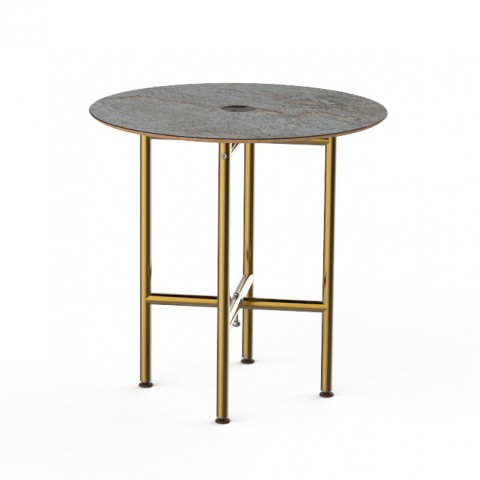 Mogogo Buffet Solutions Clix Table, 30" dia. x 30"H, round, grey slate BHP high pressure laminate with bamboo core top, brushed brass segments