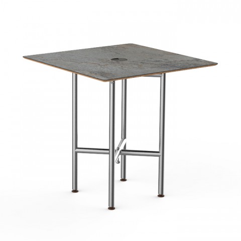 Mogogo Buffet Solutions Clix Table, 30" x 30"H, square, grey slate BHP high pressure laminate with bamboo core top, brushed stainless steel segments