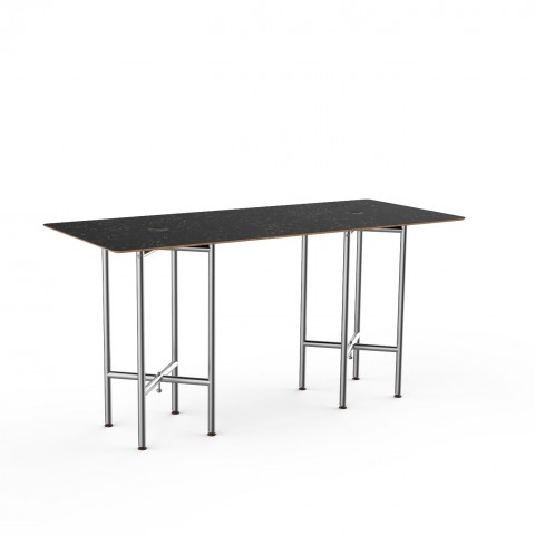 Mogogo Buffet Solutions Clix Table, 72" x 30" x 36"H, rectangular, Nero Marquina marble BHP high pressure laminate with bamboo core top, brushed stainless steel segments