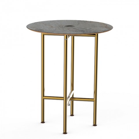 Mogogo Buffet Solutions Clix Table, 30" dia. x 36"H, round, grey slate BHP high pressure laminate with bamboo core top, brushed brass segments