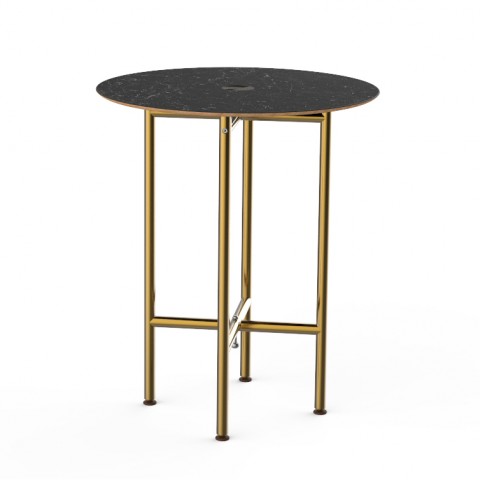 Mogogo Buffet Solutions Clix Table, 30" dia. x 36"H, round, Nero Marquina marble BHP high pressure laminate with bamboo core top, brushed brass segments