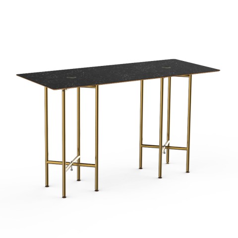 Mogogo Buffet Solutions Clix Table, 72" x 30" x 42"H, rectangular, Nero Marquina marble BHP high pressure laminate with bamboo core top, brushed brass segments