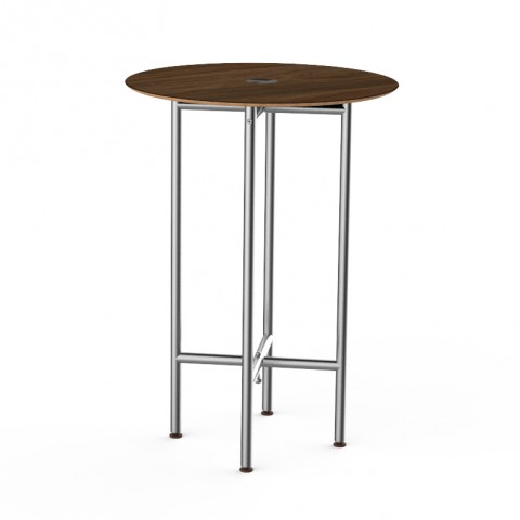 Mogogo Buffet Solutions Clix Table, 30" dia. x 42"H, round, Bengali mango wood BHP high pressure laminate with bamboo core top, brushed stainless steel segments