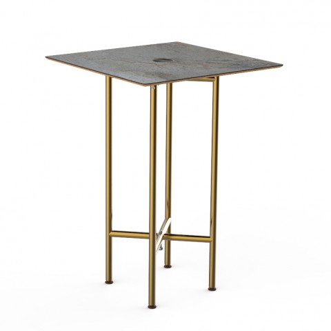 Mogogo Buffet Solutions Clix Table, 30" x 42"H, square, grey slate BHP high pressure laminate with bamboo core top, brushed brass segments