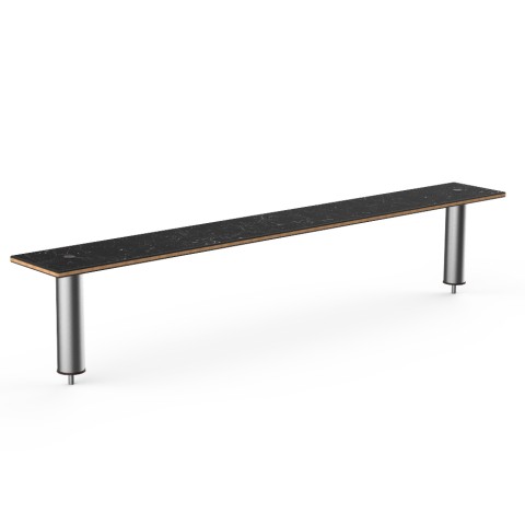 Mogogo Buffet Solutions Modular Classic Shelf, 71" x 9-1/2" x 12-1/2"H, large, rectangular, for basic, standard, & classic tables, Nero Marquina marble BHP high pressure laminate with bamboo core top, brushed stainless steel segments