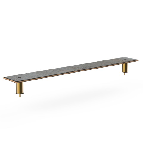 Mogogo Buffet Solutions Modular Classic Shelf, 71" x 9-1/2" x 6-1/2"H, large, low, rectangular, for basic, standard, & classic tables, grey slate BHP high pressure laminate with bamboo core top, short brushed brass segments
