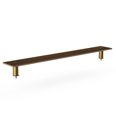 Mogogo Buffet Solutions Modular Classic Shelf, 71" x 9-1/2" x 6-1/2"H, large, low, rectangular, for basic, standard, & classic tables, Bengali mango wood BHP high pressure laminate with bamboo core top, short brushed brass segments