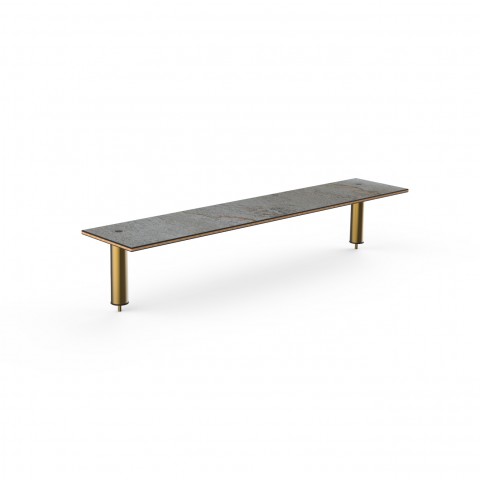 Mogogo Buffet Solutions Modular Classic Bar Shelf, 71" x 14-1/2" x 12-1/2"H, large, rectangular, for basic, & classic tables, grey slate BHP high pressure laminate with bamboo core top, long brushed brass segments
