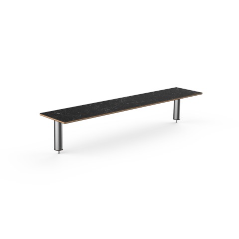 Mogogo Buffet Solutions Modular Classic Bar Shelf, 71" x 14-1/2" x 12-1/2"H, large, rectangular, for basic, & classic tables, Nero Marquina marble BHP high pressure laminate with bamboo core top, long brushed stainless steel segments