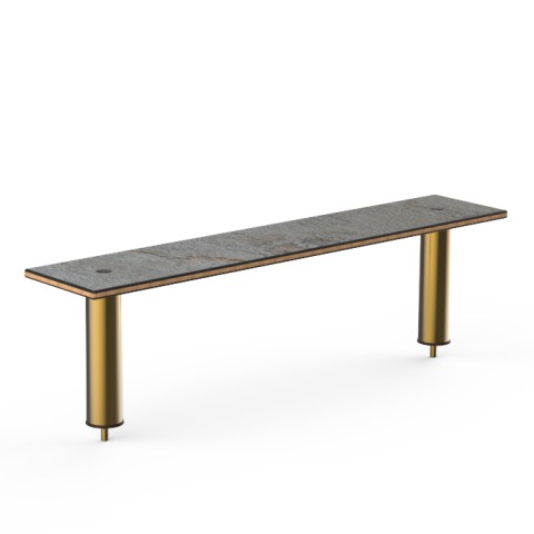 Mogogo Buffet Solutions Modular Classic Shelf, 47" x 9-1/2" x 12-1/2"H, medium, rectangular, for basic, standard, & classic tables, grey slate BHP high pressure laminate with bamboo core top, brushed brass segments