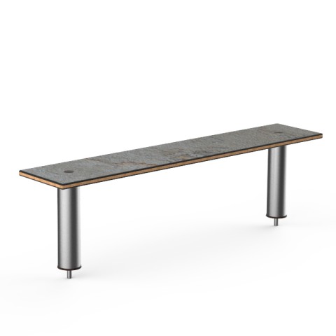 Mogogo Buffet Solutions Modular Classic Shelf, 47" x 9-1/2" x 12-1/2"H, medium, rectangular, for basic, standard, & classic tables, grey slate BHP high pressure laminate with bamboo core top, brushed stainless steel segments