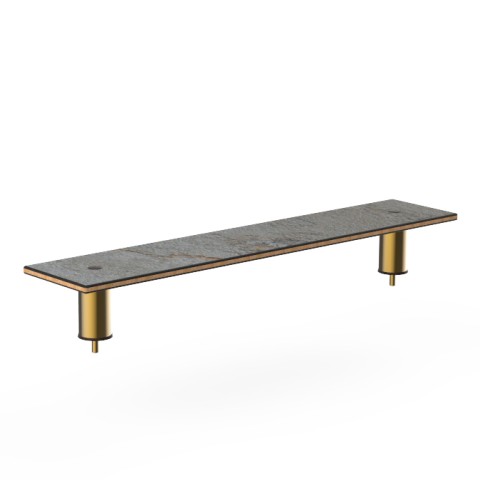 Mogogo Buffet Solutions Modular Classic Shelf, 47" x 9-1/2" x 6-1/2"H, medium, low, rectangular, for basic, standard, & classic tables, grey slate BHP high pressure laminate with bamboo core top, brushed brass segments