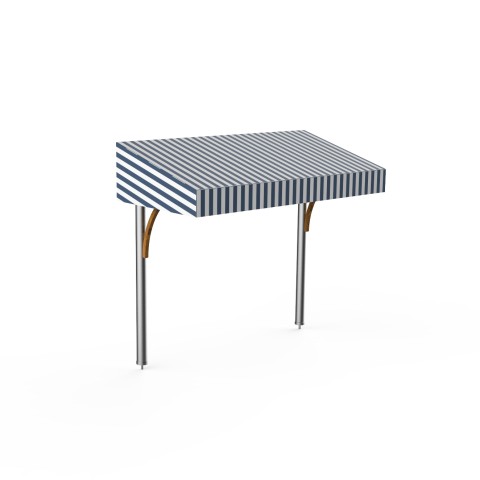 Mogogo Buffet Solutions Modular Canopy, 71" x 33-1/2" x 61"H, blue/white striped Cordura® canopy cover, fits 6' units only, stainless steel, brushed stainless steel finish, knockdown