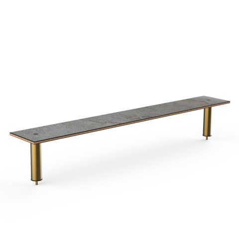 Mogogo Buffet Solutions Modular Classic Display Shelf, 80" x 12" x 12-1/2"H, wide, rectangular, grey slate BHP high pressure laminate with bamboo core top, brushed brass legs
