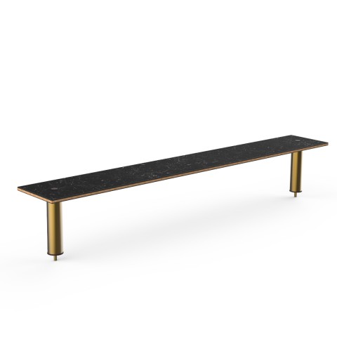 Mogogo Buffet Solutions Modular Classic Display Shelf, 80" x 12" x 12-1/2"H, wide, rectangular, Nero Marquina marble BHP high pressure laminate with bamboo core top, brushed brass legs