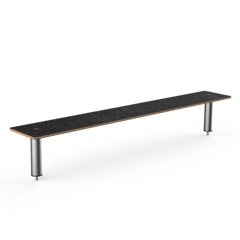Mogogo Buffet Solutions Modular Classic Display Shelf, 80" x 12" x 12-1/2"H, wide, rectangular, Nero Marquina marble BHP high pressure laminate with bamboo core top, brushed stainless steel legs