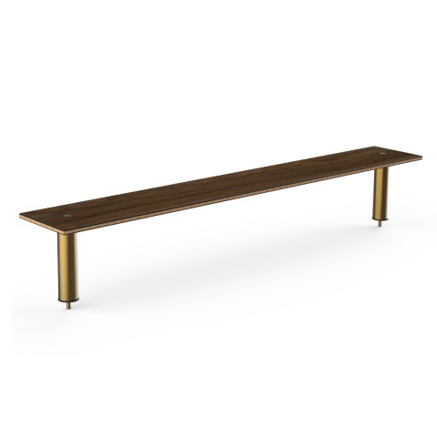 Mogogo Buffet Solutions Modular Classic Display Shelf, 80" x 12" x 12-1/2"H, wide, rectangular, Bengali mango wood BHP high pressure laminate with bamboo core top, brushed brass legs
