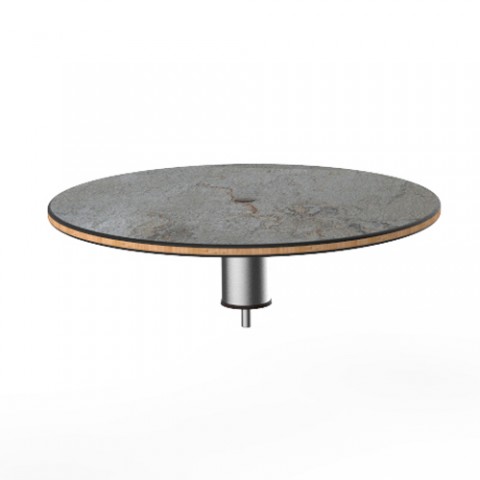 Mogogo Buffet Solutions Modular Display Shelf, 24" dia. x 6-1/2"H, low, round, gray slate BHP high pressure laminate with bamboo core top, brushed stainless steel segment