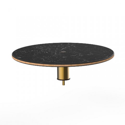 Mogogo Buffet Solutions Modular Display Shelf, 24" dia. x 6-1/2"H, low, round, Nero Marquina marble BHP high pressure laminate with bamboo core top, brushed brass segment