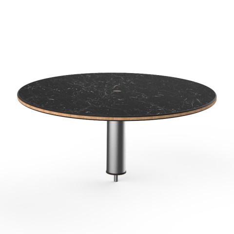 Mogogo Buffet Solutions Modular High Display Shelf, 30" dia. x 12-1/2"H, round, Nero Marquina marble BHP high pressure laminate with bamboo core top, brushed stainless steel segment