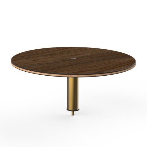 Mogogo Buffet Solutions Modular High Display Shelf, 30" dia. x 12-1/2"H, round, Bengali mango wood BHP high pressure laminate with bamboo core top, brushed brass segment