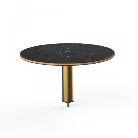 Mogogo Buffet Solutions Modular High Display Shelf, 24" dia. x 12-1/2"H, round, Nero Marquina marble BHP high pressure laminate with bamboo core top, brushed brass segment
