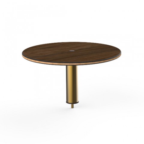 Mogogo Buffet Solutions Modular High Display Shelf, 24" dia. x 12-1/2"H, round, Bengali mango wood BHP high pressure laminate with bamboo core top, brushed brass segment